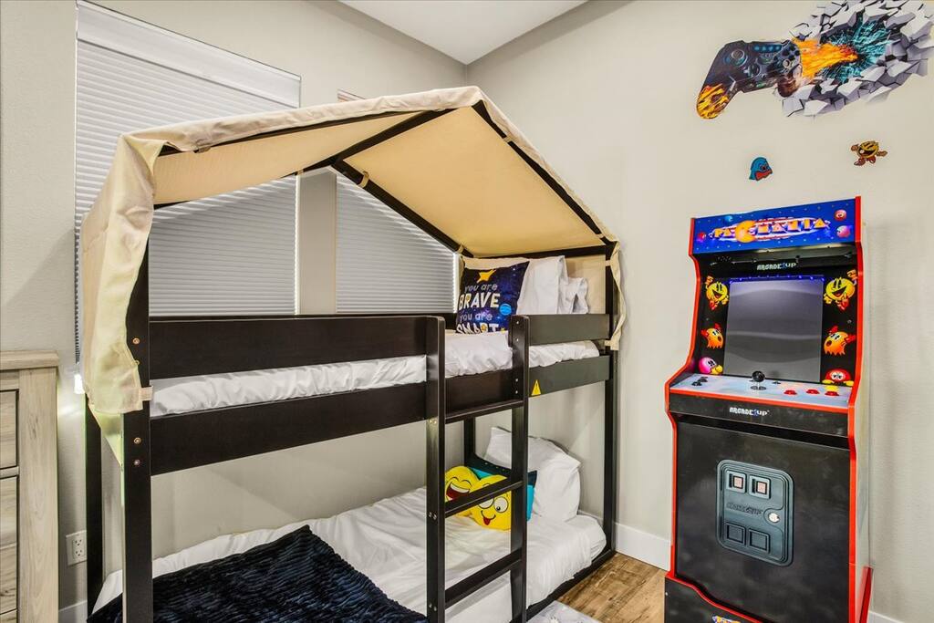 Welcome to our Palm Springs and Palm Desert Retreat located in Terra Lago, Indio, California. Living Area: - Expansive living area with superhero-themed decor - Vibrant accents and cozy indoor fireplace for relaxation and bonding Kitchen: - Fully-equipped kitchen with state-of-the-art appliances - Includes cookware and dinnerware - Coffee station with premium coffee pods and tea bags - Full bar setup for creating favorite cocktails Entertainment: - Collection of board games for epic battles of strategy - Arcade room for a nostalgic journey - Each bedroom equipped with a Roku TV and Netflix subscription Eco-Friendly Features: - Three-car garage with a charging port for EV vehicles Outdoors: - Amazing swimming pool with relaxing fountain with a sitting area inside - Pool loungers and pool chair - Private paradise with majestic mountain views - Heated pool and jacuzzi for relaxation - Fire pit area for s'mores and stargazing - BBQ area for savoring California cuisine - Dining table for al fresco meals with loved ones - Misting system for summer heat Connectivity: - High-speed internet (500MBPS) throughout the property for staying connected or unwinding Productivity: - Newly added ergonomic desk and chair to stay productive * A small refundable security deposit is required for the booking.
