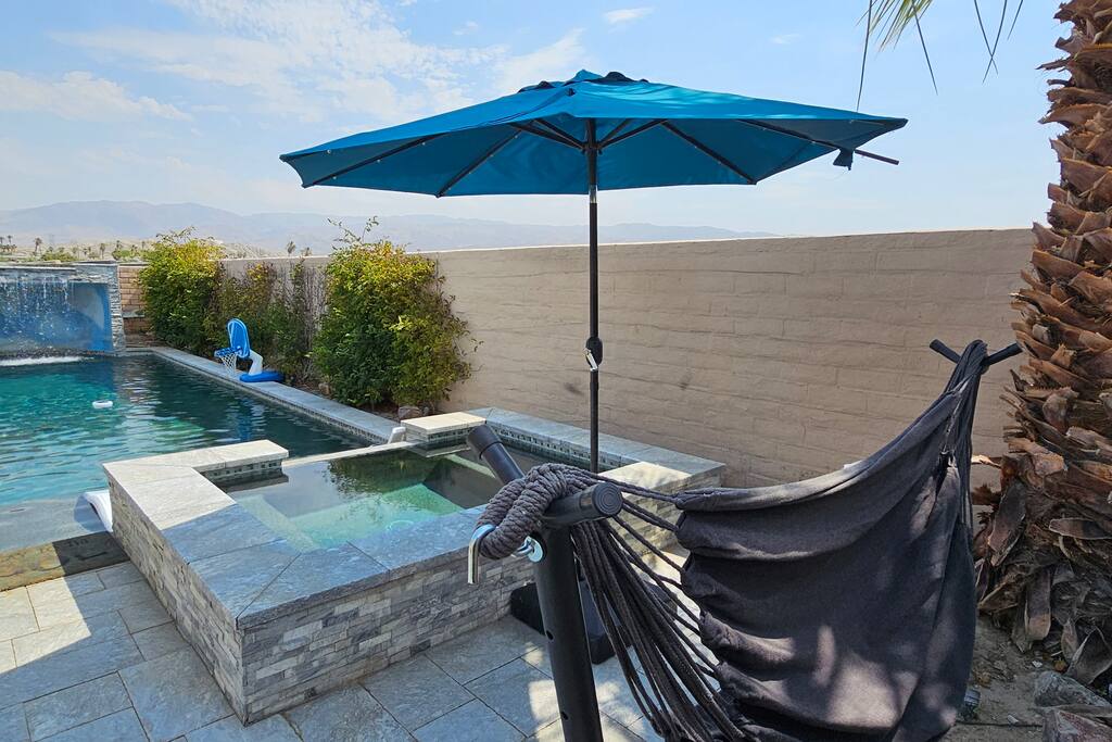 A luxury vacation home with 10 beds, 3 baths, a stunning pool with a relaxing fountain, and a spa in a scenic mountain views! One of the most LOVED destinations in Palm Springs and Palm Desert!!! Nearby golf, national park, and desert adventures. - Spacious Living Area - Full Kitchen - Arcade games - Coffee Station & Mini Bar - Erg desk and Chair - Board Games - EV charger - Pool & Jacuzzi - Fire Pit & BBQ Area - Pool chairs and loungers - Fountain - In-Pool Bar seating Book now!