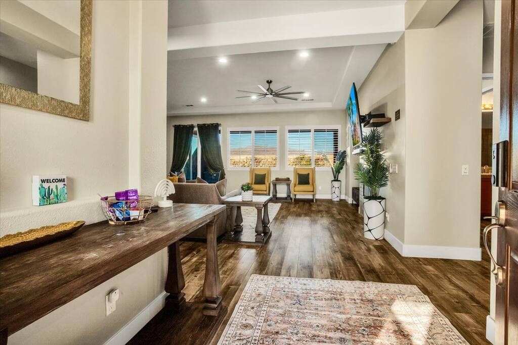 Property Access Enjoy full access to the entire home, including the private pool and jacuzzi. Pool & Spa Heating Pool Heating: $150/day (Sept–May) and $100/day (June–Aug). Heated once to a max of 82°F. Please request at least 8 hours in advance; payment required upfront. Spa Heating: $50/day for up to 6 hours/day (max 98°F). Extra usage will incur additional charges. Check-In / Check-Out We’re happy to offer early check-ins or late check-outs when available for a small additional fee. Just message us in advance to confirm. Guest Registration All guests (including children) must be registered before check-in. Maximum occupancy is 12 guests. No unregistered guests or visitors are allowed at any time. Unauthorized guests will incur a $250 fee per person. Security Deposit A refundable $250–$500 deposit is required before check-in. It will be returned within 7 days after checkout if there are no damages or rule violations. EV Charging EV charging available for your convenience. Fee: $10/day + $0.40 per kWh (payable before use). Please notify us in advance if you plan to charge. Parking RV, camper vans, or oversized/restricted vehicles are not permitted inside the community. You may park outside at your own discretion and risk. Desert Conditions The home is located in a desert area — light dust on outdoor spaces is natural due to high winds. Our team maintains the area regularly, but some dust accumulation is unavoidable.